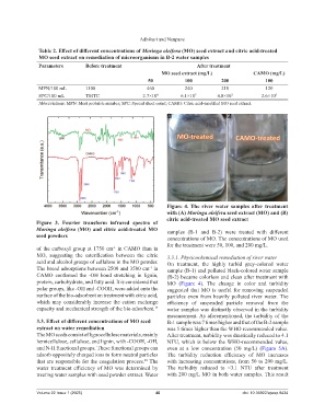 acid and alcohol groups of cellulose in the MO powder. On treatment, the highly turbid grey-colored water