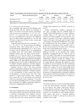 Table 7. The LCR of As for men, women, and children 58.1 µg/L, exceeding both the CDWQS limits of