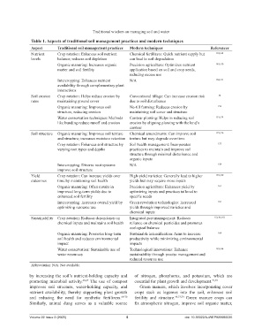 Table 1. Aspects of traditional soil management practices and modern techniques