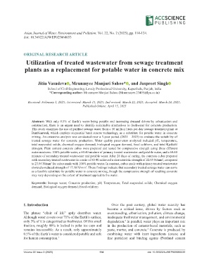 Asian Journal of Water, Environment and Pollution. Vol. 22, No. 2 (2025), pp. 114-124.