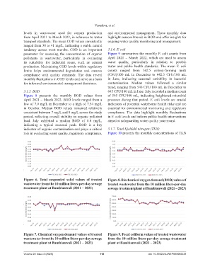 Figure 8 presents the monthly BOD values from of 595 CFU/100 mL, indicating heightened microbial