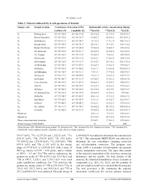 Table 2. Natural radioactivity in soil specimens of Kumait