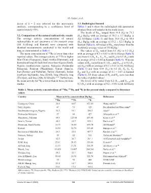 3.2. Comparison of the natural radioactivity results (S ) Bq/kg with an average of 50.2 ± 5.7 Bq/kg in