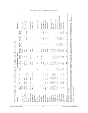 Country Sicily, Italy Mounana, Gabon Uttara Kannada, India Punjab, Pakistan Shabwah and Hadramout, Yemen Taghdoua, Saudi Arabia Fars, Iran Bolu, Turkey Ma’an, Jordan Tulkarem, Palestine Pshdar, Iraq Kirkuk, Iraq Baghdad, Iraq Al-Sadr, Iraq Ad Dayr, Iraq World average Ali Al- Sharqi, Iraq Kumait, Iraq Note: Refers to not available. the Effects of Atomic Radiation.