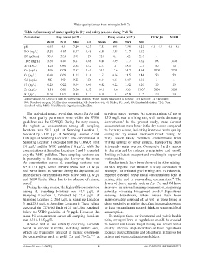 Ni, most quality parameters were within the WHO 15.3 mg/L near a mining site, with levels decreasing