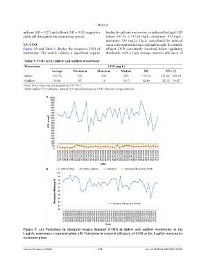 Figure 5A and Table 5 display the measured COD of effluent COD consistently remained below regulatory