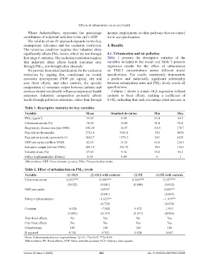 through PM2.5, not through other channels. regression results for the effect of urbanization