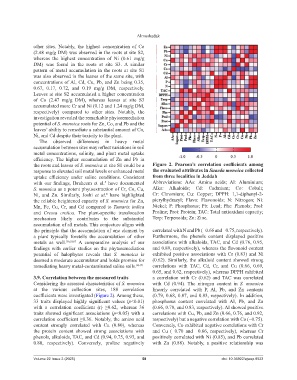phenols, alkaloids, TAC, and Cd (0.94, 0.75, 0.93, and positively correlated with Ni (0.85), and Pb correlated