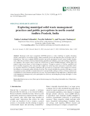 infrastructure. This study examines MSWM practices and public perceptions in north coastal Andhra Pradesh,