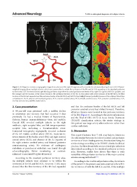 weighted imaging shows multiple infarcts, which were assumed to be within the territories of the BA and left ICA according to the standard perfusion