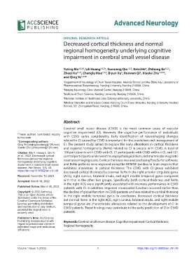disease. Adv Neuro, 1(1): 48. exhibited alterations in cortical thickness. The CSVD with CI group exhibited
