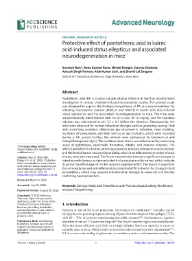 Accepted: July 29, 2022 Keywords: Epilepsy; Kainic acid; Pantothenic acid; Pharmacological activity; Biochemical
