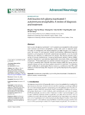 and treatment. Adv Neuro, 1(3): 237. Keywords: Autoimmune encephalitis; Leucine-rich glioma-inactivated-1; Faciobrachial