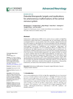 Received: September 29, 2022 Keywords: Arteriovenous malformations; Therapeutic targets; Medication; Vascular