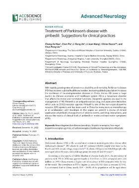 Citation: Mao CJ, Piu C, Jin LR, application of piribedil, management of adverse events, and drug interactions, and