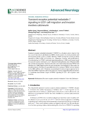 https://doi.org/10.36922/an.334 Keywords: Glioblastoma; Transient receptor potential melastatin 7 channels; Calcineurin