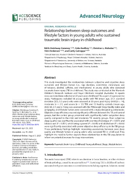 distributed under the terms of the Keywords: Traumatic brain injury; Childhood; Young adulthood; Sleep; Lifestyle factors