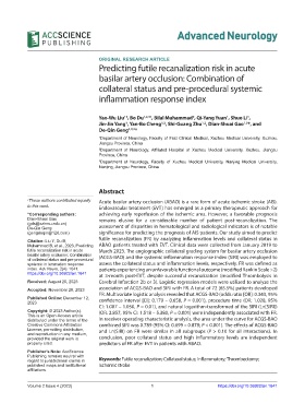Citation: Liu Y, Du B, futile recanalization (FR) by analyzing inflammation levels and collateral status in