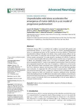 to this work. to a chronic unpredictable mild stress (UMS) protocol on the onset of parkinsonism