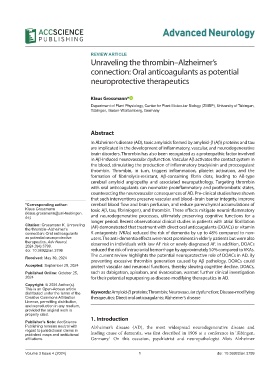 distributed under the terms of the Keywords: Amyloid-β proteins; Thrombin; Neurovascular dysfunction; Disease-modifying