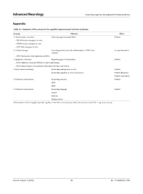 Table A1. Summary of the prospects for cognitive improvement in Down syndrome