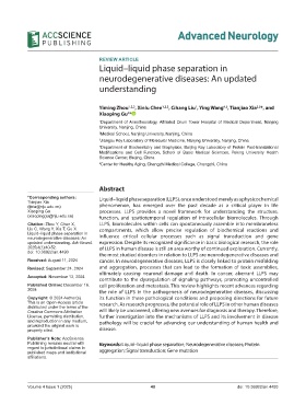 Received: August 11, 2024 cancer. In neurodegenerative diseases, LLPS is closely linked to protein misfolding