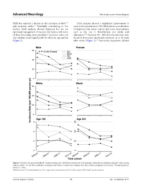 Figure 2. Trends in the age-standardised** annual incidence per 100,000 per year for first-ever ischaemic strokes by sex, ethnicity, and age (Open Access