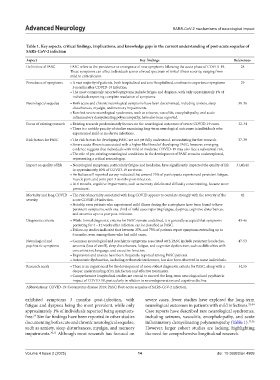 Table 1. Key aspects, critical findings, implications, and knowledge gaps in the current understanding of post‑acute sequelae of