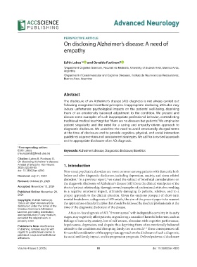 Copyright: © 2024 Author(s). mental breakdown, a diagnosis of AD entails, the aim of the present paper is to reassert