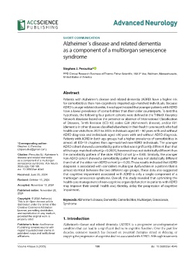 Copyright: © 2024 Author(s). Keywords: Alzheimer’s disease; Dementia; Comorbidities; Multiorgan; Senescence;