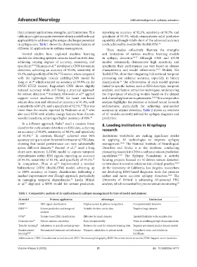 different AI applications in epilepsy management. These studies collectively illustrate the strengths