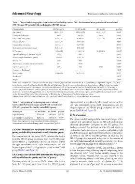 with smell disorder group and the HC group primary olfactory cortex in the early phase of PD. Their