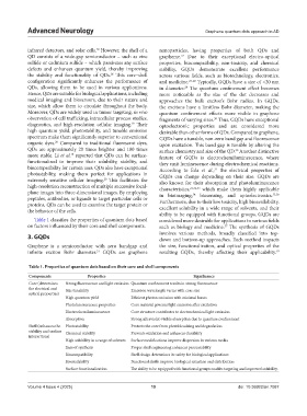 Table 1 classifies the properties of quantum dots based considered more desirable for applications in various fields