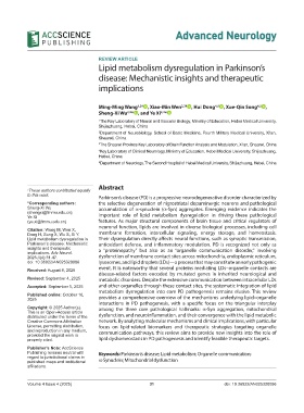 properly cited. lipid dyshomeostasis in PD pathogenesis and identify feasible therapeutic targets.