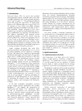 modulation. 11-17 In PD, disruptions in lipid homeostasis function, lipids are tightly associated with the etiology,