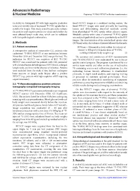 physicians. Both physicians examined the PET, CT, and CT scan was 66 years (range: 53 – 76 years). There was a
