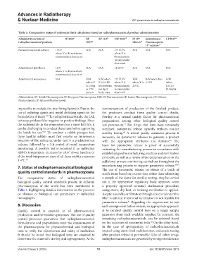 Table 3. Comparative status of endotoxin limit calculation based on radiopharmaceutical product administration