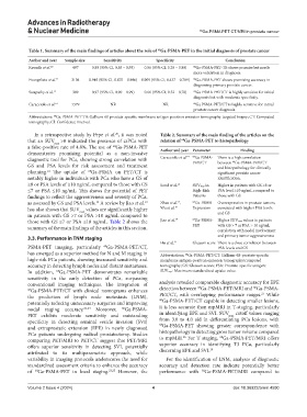 Table 1. Summary of the main findings of articles about the role of Ga-PSMA-PET in the initial diagnosis of prostate cancer