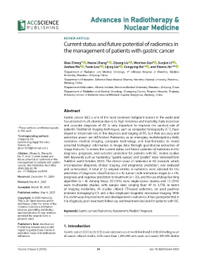 Liu Z, et al. Current status and with keywords such as “radiomics,” “gastric cancer,” and “predict” were retrieved from