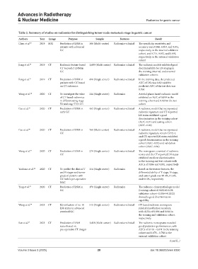 Table 2. Summary of studies on radiomics for distinguishing tumor‑node‑metastasis stage in gastric cancer