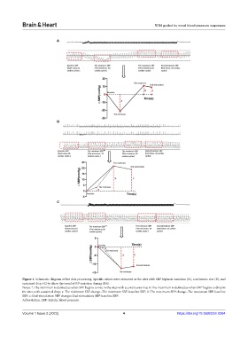 Figure 1. Schematic diagram of the data processing. Specific values were extracted at the sites with SBP biphasic variation (A), continuous rise (B), and