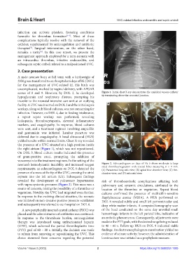 placed and the administration of antibiotics was continued. hemorrhagic infarcts in the left parietal lobe, indicative of