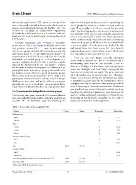 intervention group (n = 6) participated in the memory VR row, depending on the number of tiles used.