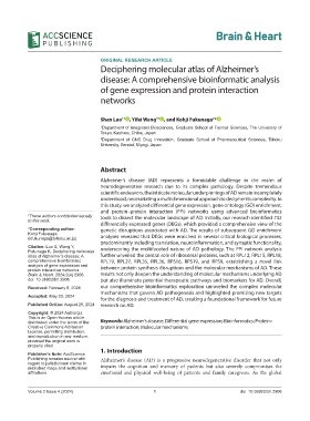 Brain & Heart. 2024;2(4):2906. results not only deepen the understanding of molecular mechanisms underlying AD