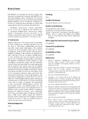 The diagnosis of MINOCA requires diagnosis of AMI 1. Rossler C, Morbidoni J, Santillán ME, et al. Myocardial