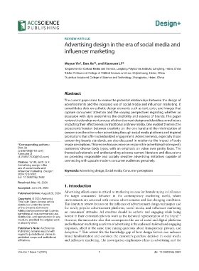 influencer marketing. Design+. Keywords: Advertising design; Social media; Consumer perceptions