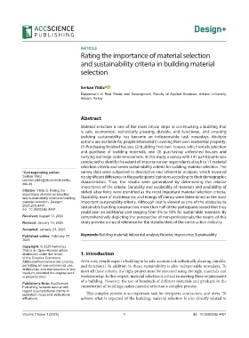 and sustainability criteria in building Durability, ease of maintenance, and energy efficiency were determined as the most