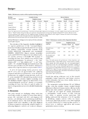 outlines the macro-average metrics and provides a detailed Table 3. Performance metrics of the diagnosis classifiers