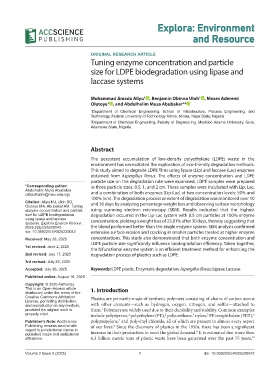 Accepted: July 30, 2025 Keywords: LDPE plastic; Enzymatic degradation; Aspergillus flavus; Lipase; Laccase