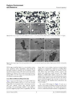 damage differ across the images and correlate directly with displayed irregular/rough surfaces observed for LDPE